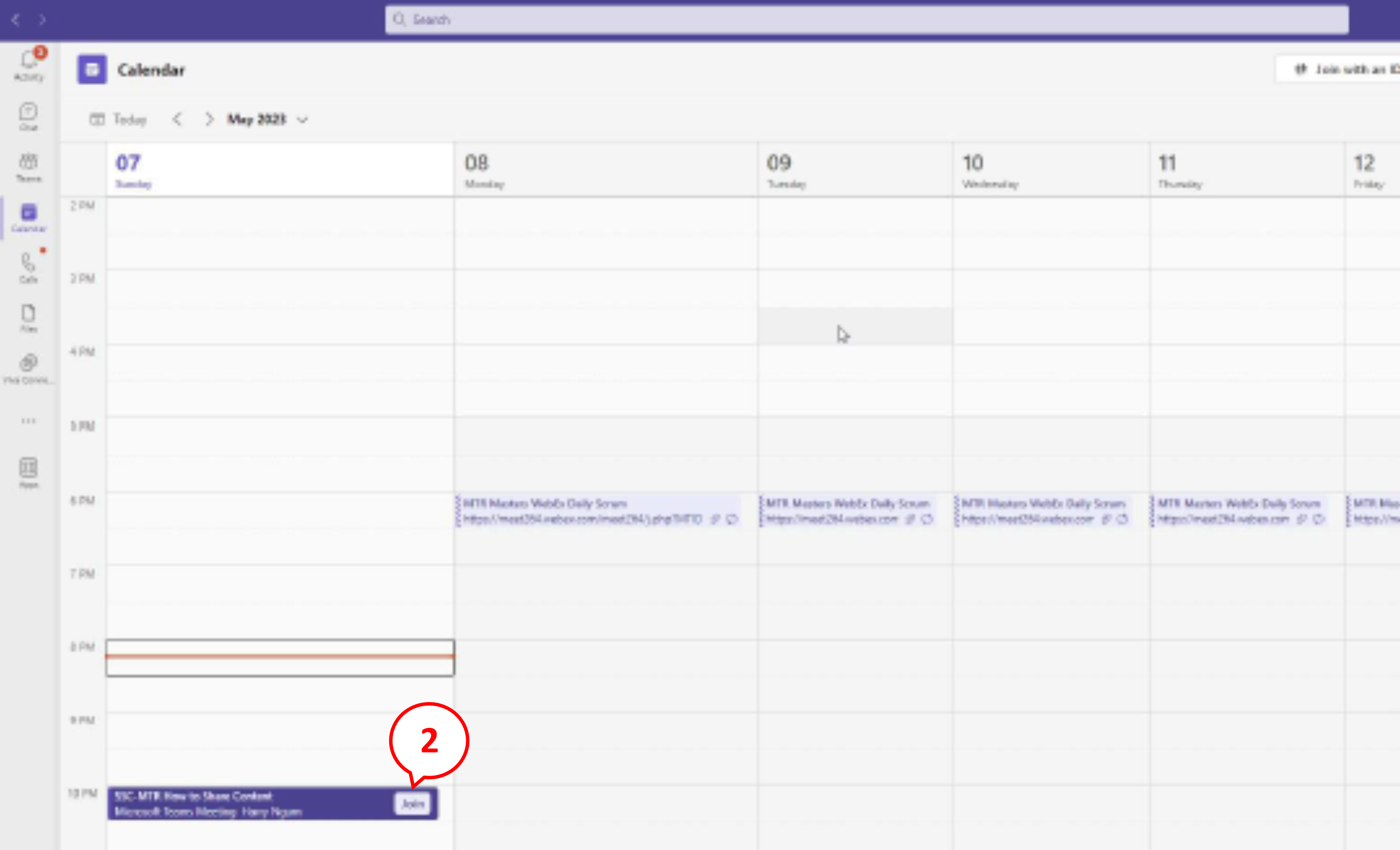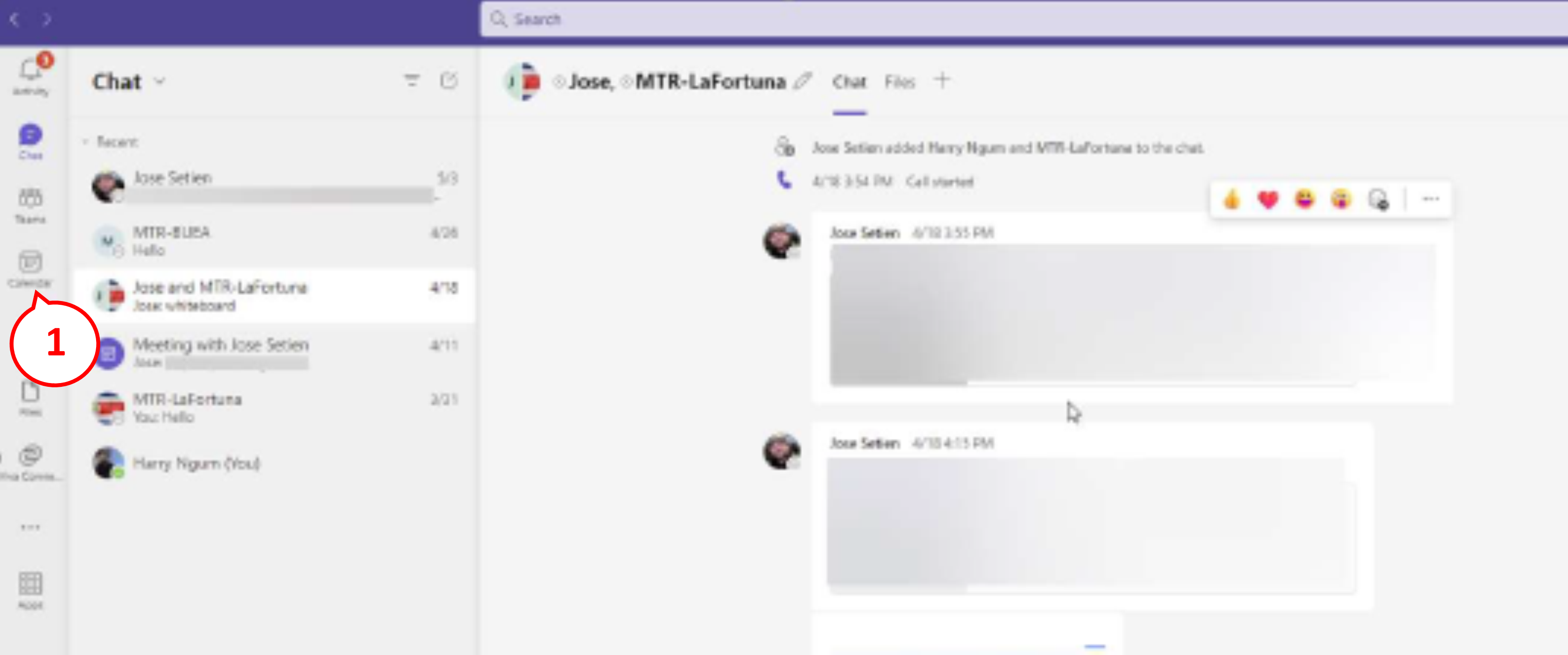 Open MS Teams on your personal device and click the Calendar icon (3). -