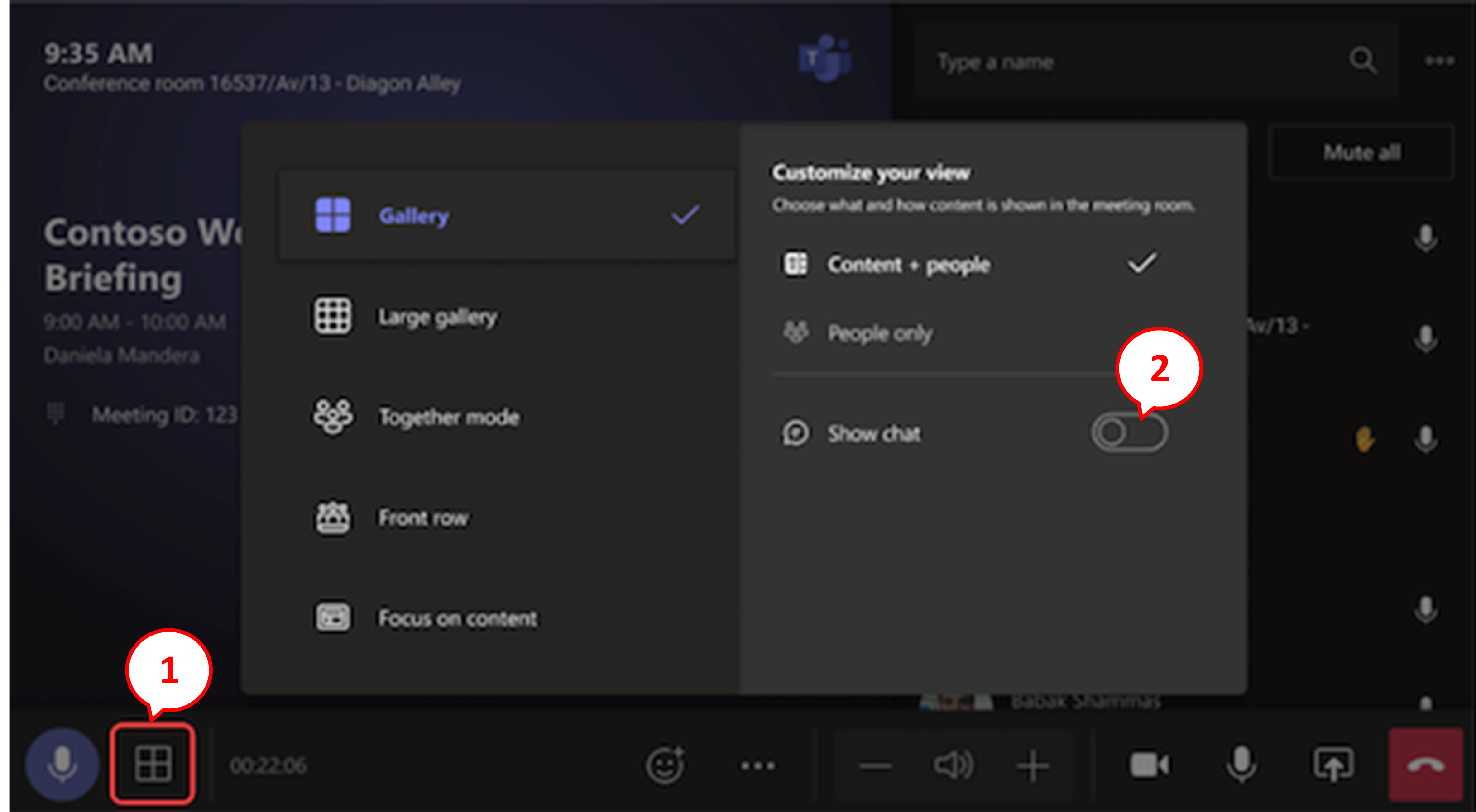 Room users can see the meeting chat sent by remote participants on the front-of-room display.