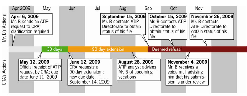 Pursuant to the Acts referred to above, departments and agencies have a legal obligation to provide timely access to information. Whether or not the CRA is meeting the legislated requirements for timely access falls within the purview of the Information and Privacy Commissioners. However, by failing to provide complete, accurate, clear, and timely information to taxpayers making ATIP requests, the CRA is neglecting to comply with the Taxpayer Bill of Rights and this matter falls within the purview of our Office.