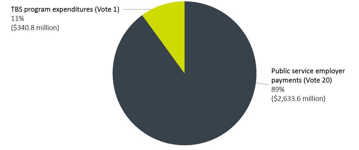 The above costs include $63.8 million for employee benefit plans for Public Services and Procurement Canada ($61.3 million) and TBS ($2.5 million).