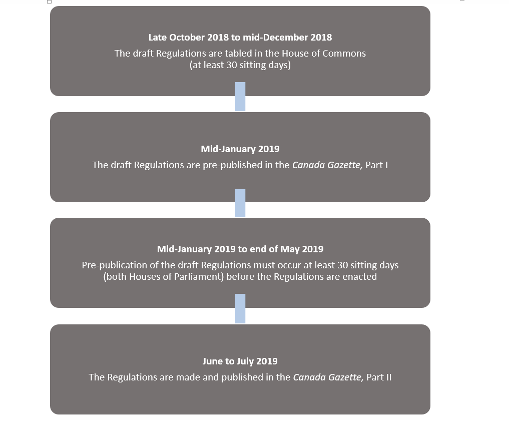 - Tabling of the amended Regulations in Parliament and publication in the Canada Gazette, Part I