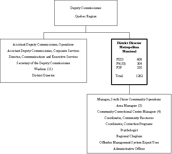 The position is 1 of 18 positions at the first managerial level reporting to the Deputy Minister (DM). The others are Assistant Deputy Minister (ADM), Strategic Policy and Planning; ADM, Employment Policy and Program Design; ADM, Employment Insurance Operations; ADM, Employment Program Operations; ADM, Workplace Skills Development; ADM, Labour and Homelessness; ADM, Learning; ADM, Communications and Ministerial Affairs; and the 9 other Regional Executive Heads (REHs) of British Columbia and Yukon, Alberta, Saskatchewan, Manitoba, Quebec, New Brunswick, Nova Scotia, Prince Edward Island and Newfoundland.