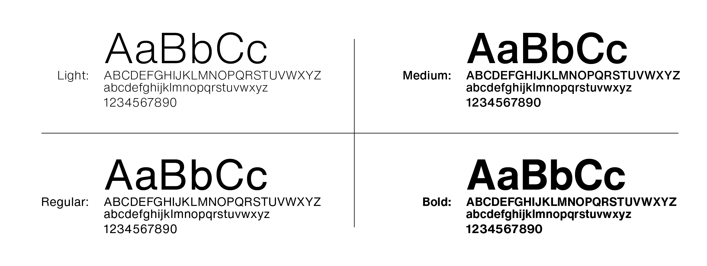 Figure 1. Helvetica Now typeface in optical size text in light, regular, medium and bold weights
