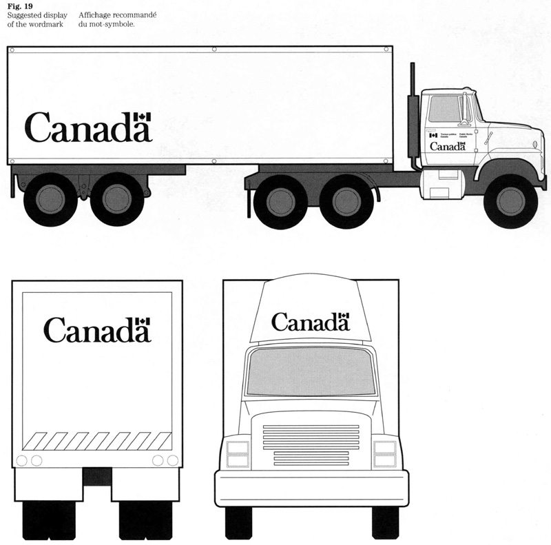 - three corporate symbols (Coat of Arms, flag, "Canada" wordmark);