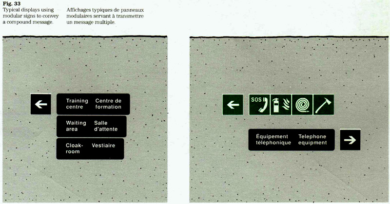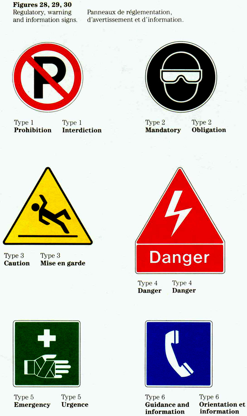 The FIP signage system promotes functional communications and the use of plain language. A comprehensive set of graphic symbols, based on national and international standards, forms part of the system. It includes symbols related to health, safety, public facilities and services, as well as the symbol that indicates services in both official languages.