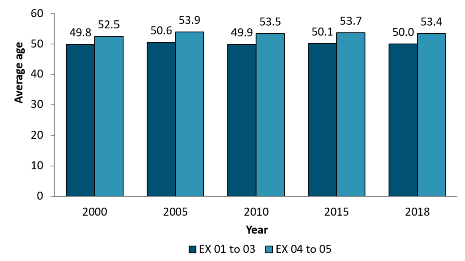 - the average age of senior executives at the EX-04 to EX-05 levels hovered between 53 and 54 years of age