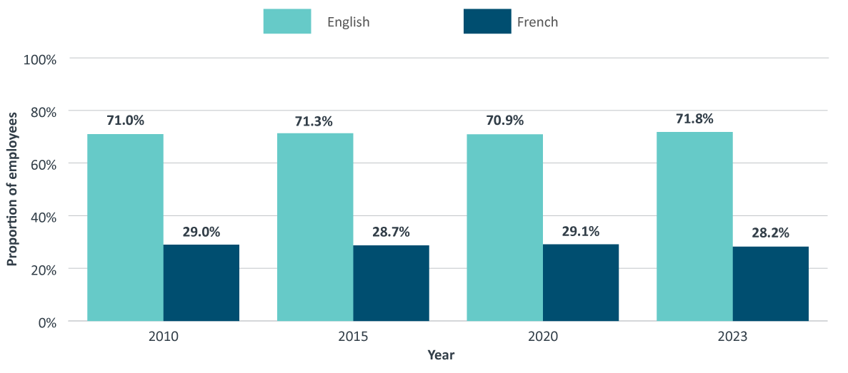 - 28.2% of employees indicated French as their first official language (29.0% in 2010)