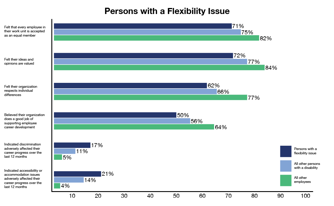 Figure 6: Results for persons with a flexibility issue compared with results for all other persons with a disability and all other employeesFigure 6 - Text version