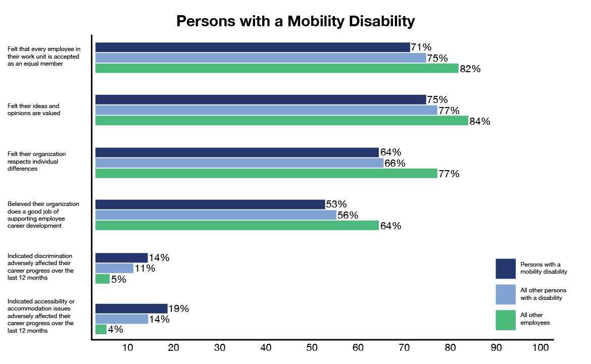 Figure 5: Results for persons with a mobility disability compared with results for all other persons with a disability and all other employeesFigure 5 - Text version