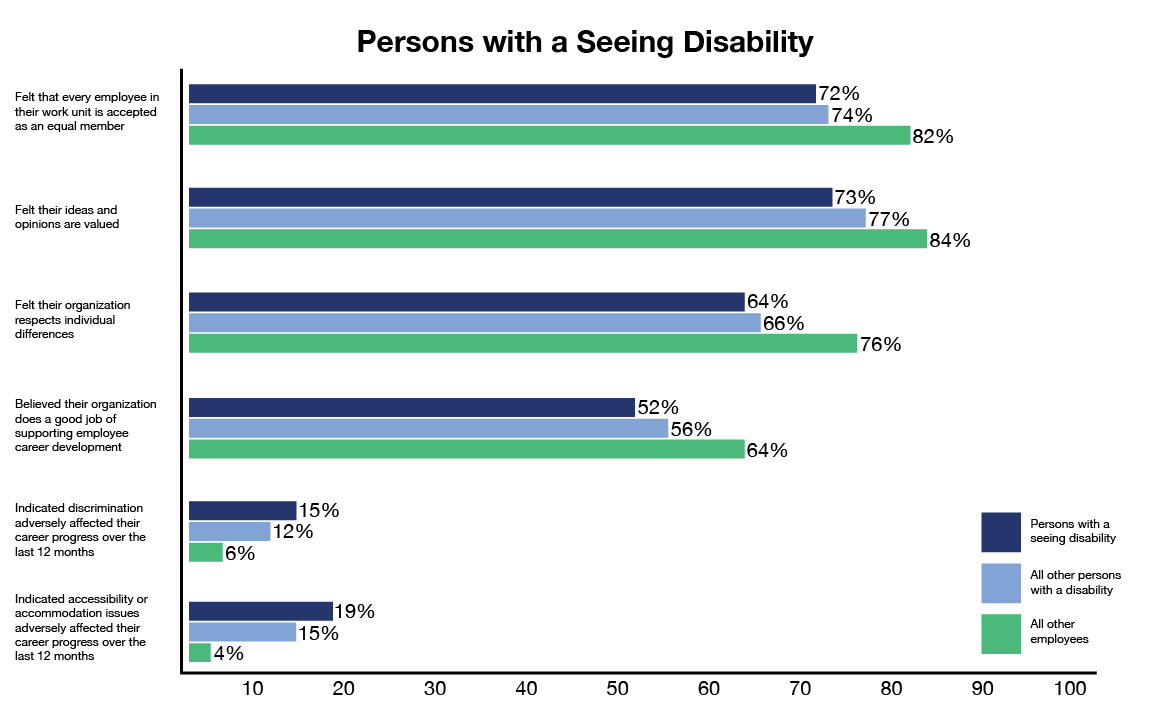 Figure 2: Results for persons with a seeing disability compared with results for all other persons with a disability and all other employeesFigure 2 - Text version