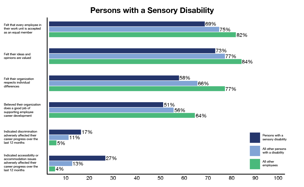 Figure 8: Results for persons with a sensory disability compared with results for all other persons with a disability and all other employeesFigure 8 - Text version