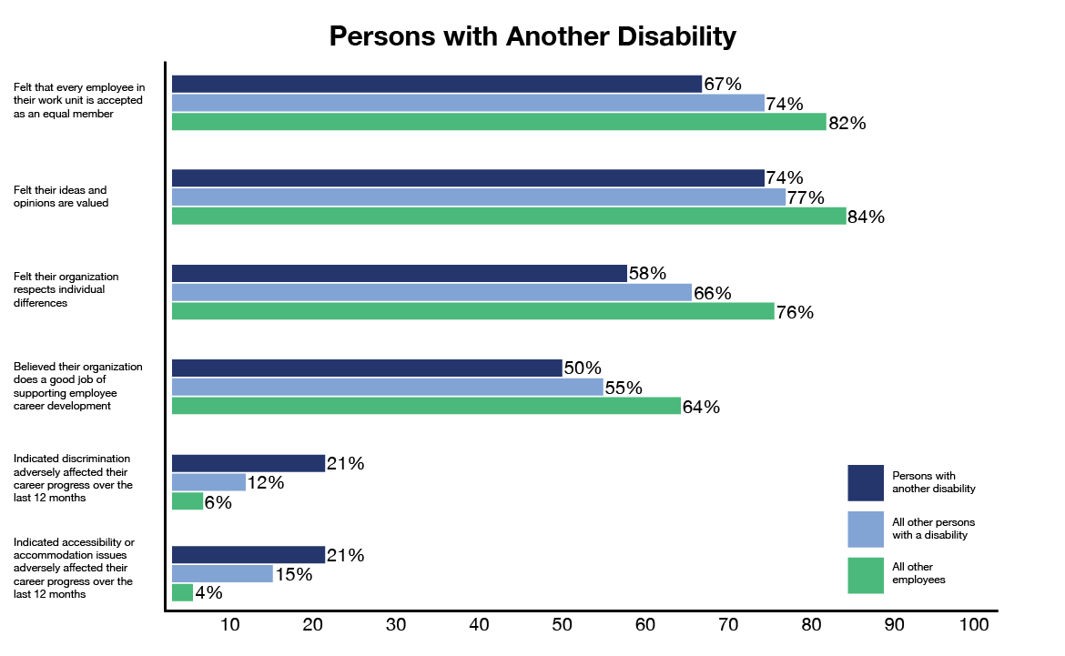 Figure 12: Results for persons with another disability compared with results for all other persons with a disability and all other employeesFigure 12 - Text version