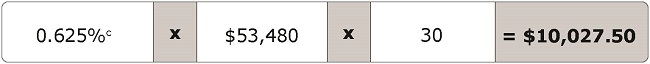 0.625 percent multiplied by 45,000 dollars multiplied by 30 equals 8,437.50 dollars.
