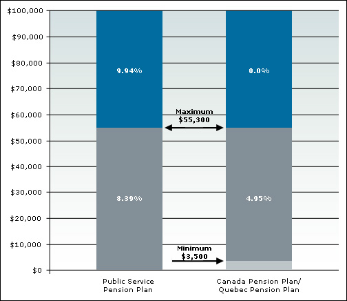 On the portion of your salary up to the YMPE, you pay into your public service pension plan at a lower rate and you also contribute to the CPP/QPP.