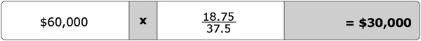 90,000 dollars multiplied by 18.75 hours divided by 37.5 hours equals 45,000 dollars.