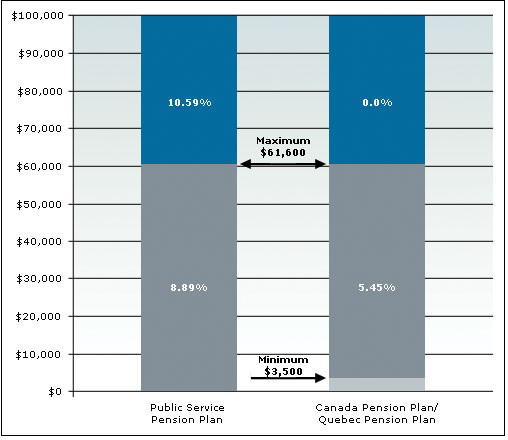 Your public service pension plan is coordinated with the Canada Pension Plan (CPP) and Quebec Pension Plan (QPP). So, in addition to the public service pension plan, you and your employer must also pay into the CPP or QPP. You pay into CPP if you work outside Quebec and QPP if you work in Quebec.