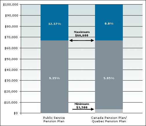 Figure 1 shows the contribution rates under the public service pension plan and CPP/QPP for employees who started paying into the public service pension plan before January 1, 2013.