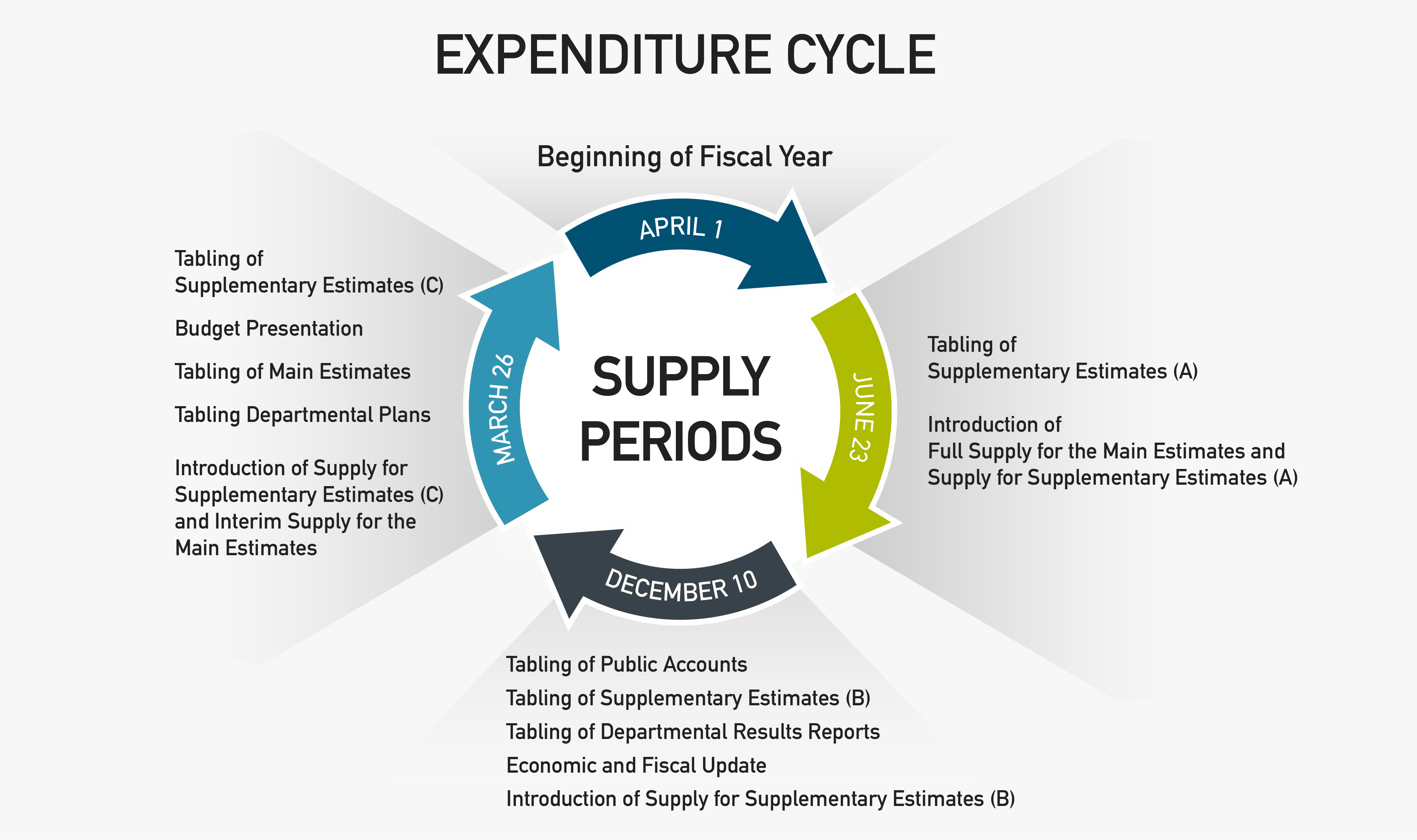 Before the fiscal year begins on April 1, the Main Estimates are tabled in Parliament to present spending plans for the upcoming year. This is also when departments report on what they plan to achieve over the next 3 years.