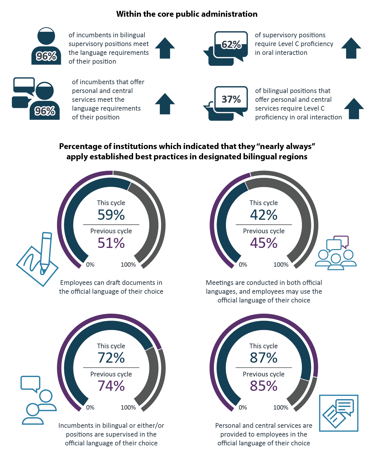 Within the core public administration, 42% of positions are assigned to service the public in both official languages, a trend on the rise