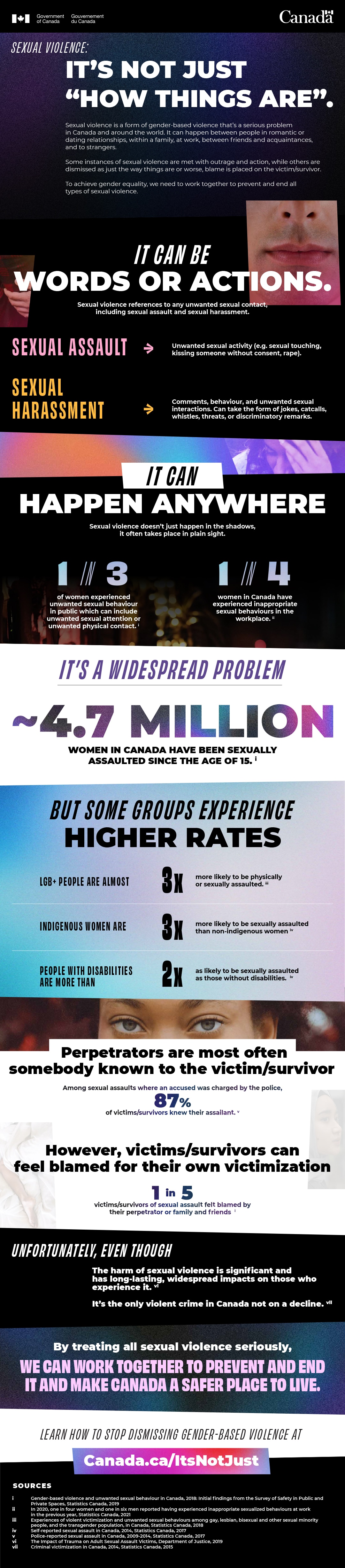 By treating all sexual violence seriously, we can work together to prevent and end it and make Canada a safer place to live.