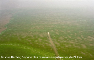 La menace de la prolifération d’algues toxiques et nuisibles plane à nouveau sur le lac Érié et les zones riveraines des lacs Huron, Ontario et Michigan. Bon nombre des espèces d’algues entraînent une dégradation des habitats aquatiques et représentent un danger pour la santé des humains et des espèces sauvages. Par ailleurs, cette prolifération a aussi des répercussions économiques, les quantités excessives d’algues bloquant les prises d’eau, augmentant les coûts du traitement de l’eau et nuisant à la pêche, au tourisme ainsi qu’aux loisirs.