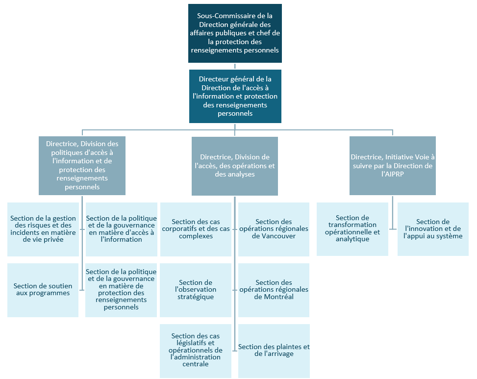 Le tableau suivant illustre la structure de la Direction de l’AIPRP.