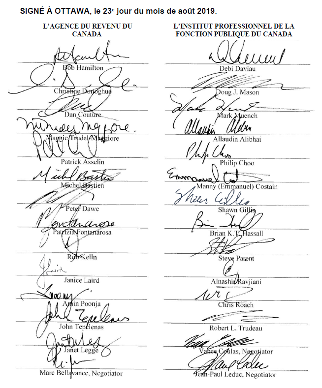 Convention entre l’Agence du revenu du Canada et l’Institut professionnel de la fonction publique du Canada