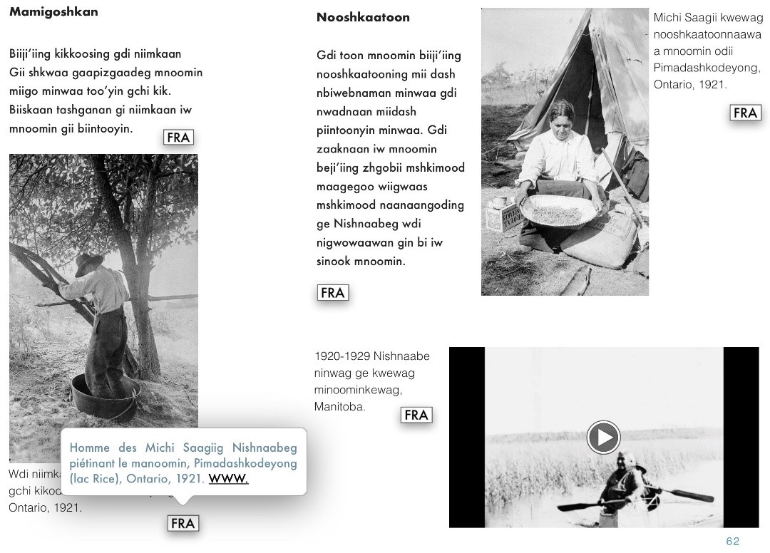 Page tirée de l'essai d'Anna Heffernan, « Manoominikewin : la récolte du riz sauvage, tradition des Nishnaabeg »