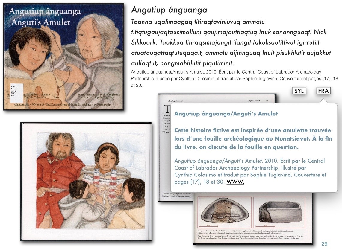 Dans la mesure du possible, les textes ou les enregistrements sont fournis dans un des dialectes ou langues autochtones suivants. Des versions française et anglaise sont également offertes.