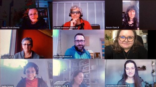 Image : Capture d’écran du CCU. De gauche à droite: Rangée du haut: Hannah Scott, Jo-Anne Wemmers, Natalie Clark. Rangée du milieu: Carmen Gill, Benjamin Roebuck, Ombudsman Heidi Illingworth. Rangée du bas: Dre Nadia Ferrara, Holly Graham, Samantha Chopik