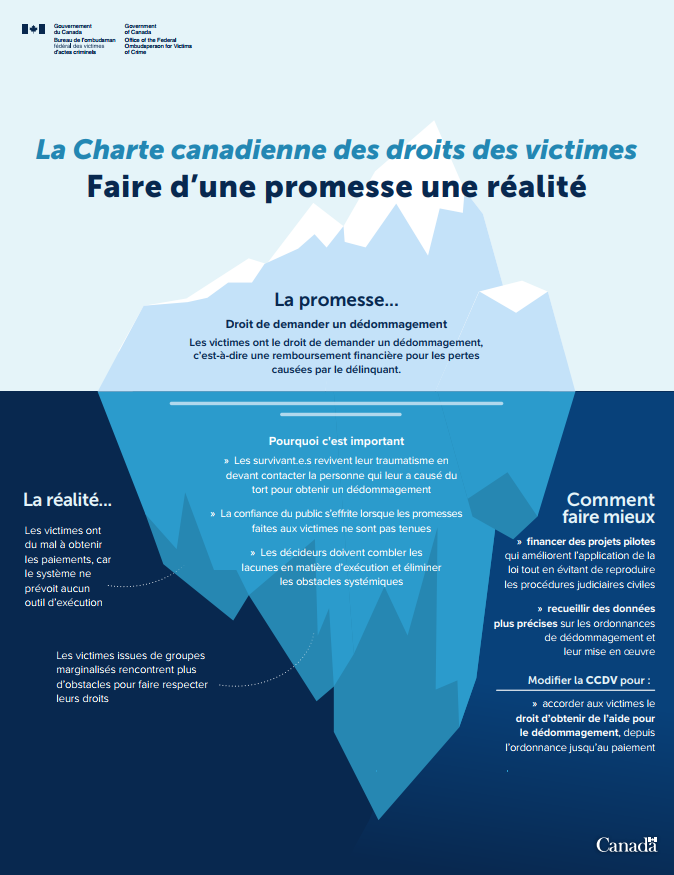 - accorder aux victimes le droit à l’aide au dédommagement, de l’ordonnance au paiement