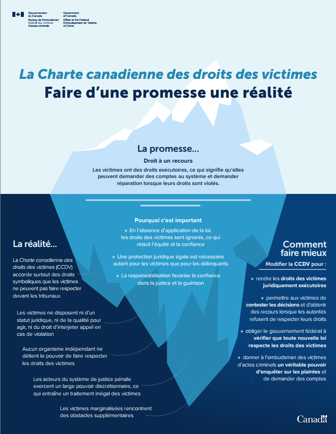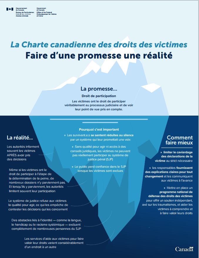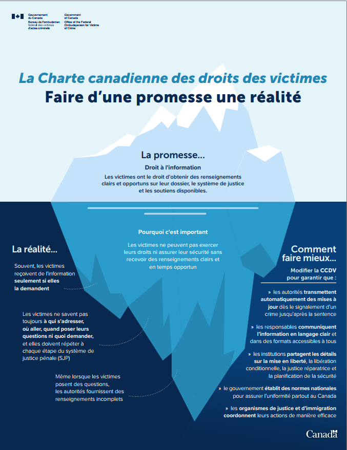 Les victimes ont le droit d'obtenir des renseignements clairs et opportuns sur leur dossier, le système de justice et les soutiens disponibles. |