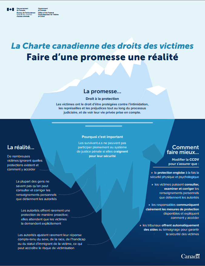 Les victimes ont le droit d'être protégées contre l'intimidation, les représailles et les préjudices, et de voir leur vie privée prise en compte. |