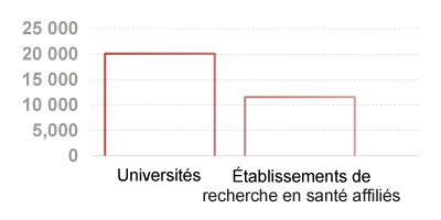 | Établissements de recherche en santé affiliés | 2 100 | 1 500 | 4 200 |
