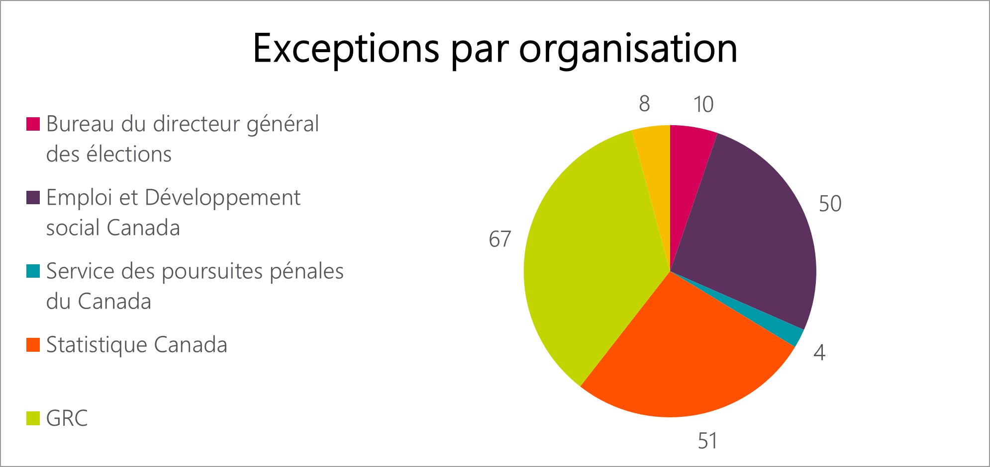 - EDSC, StatCan et la GRC ont représenté 88,4 % des exceptions.