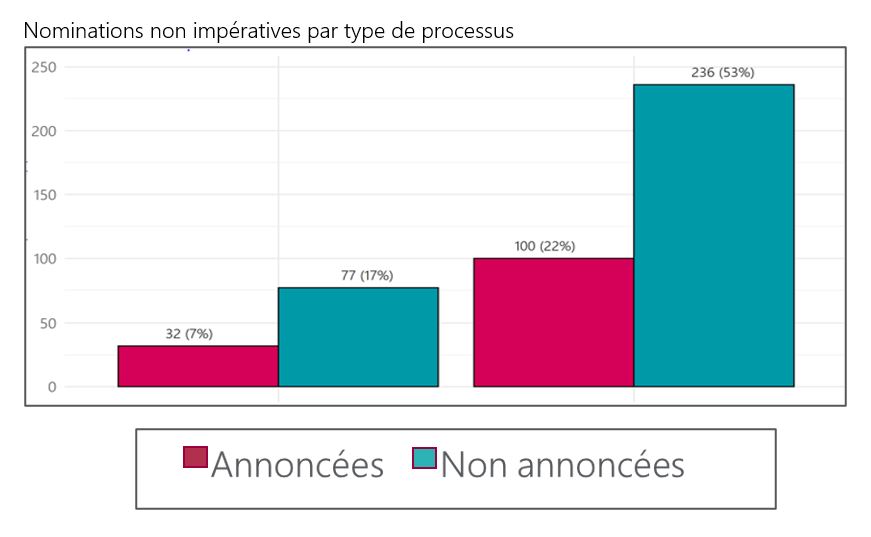 313 (70 %) des nominations non impératives ont été faites par l’entremise d’un processus de nomination non annoncé.