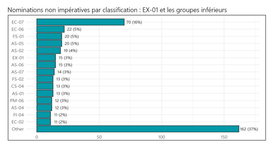 Le groupe EC-07 est le groupe et le niveau ayant connu le plus grand nombre de nominations non impératives.