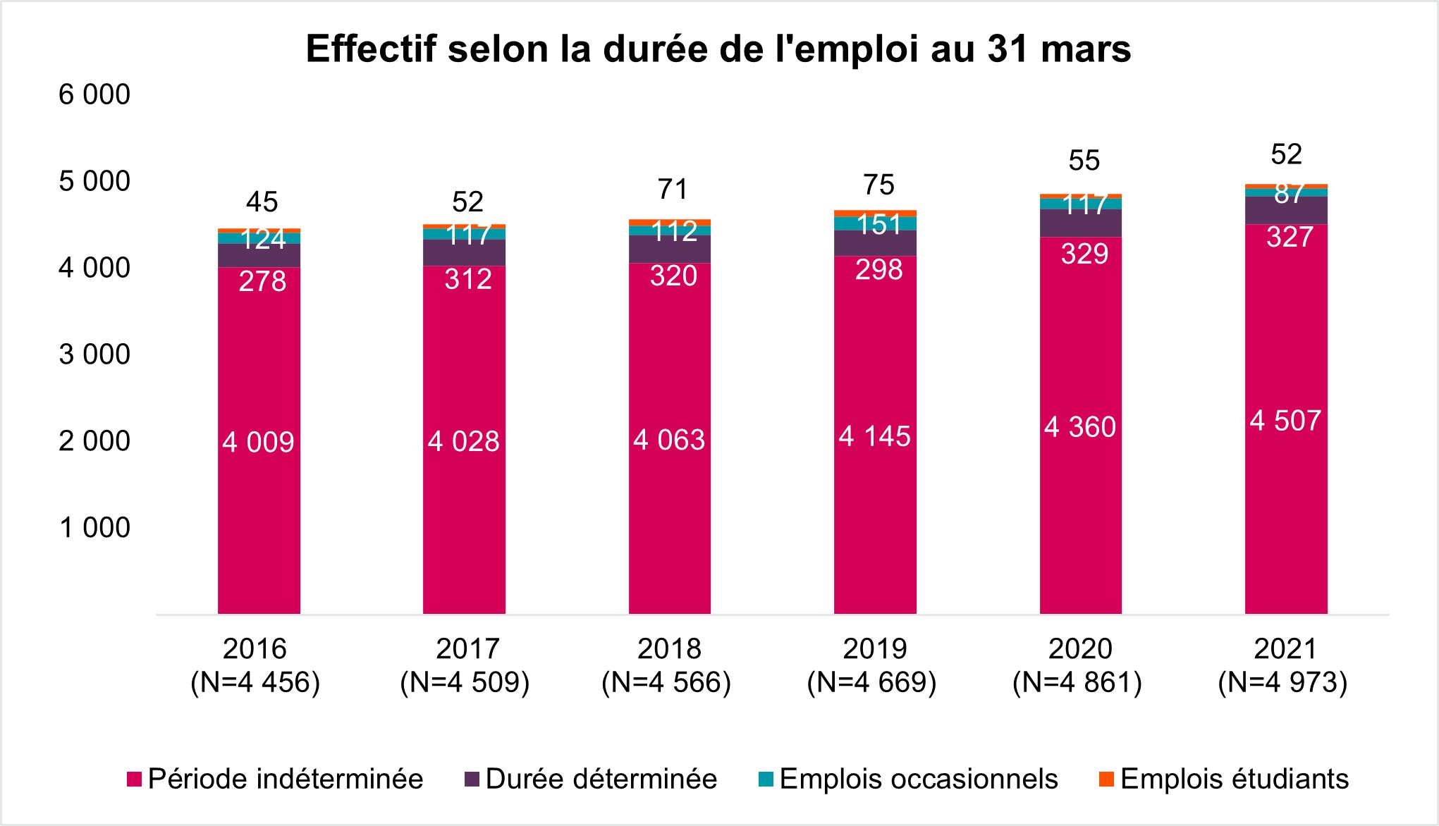 Justice Canada est une organisation de grande taille avec un effectif de 4973 employés (au 31 mars 2021).