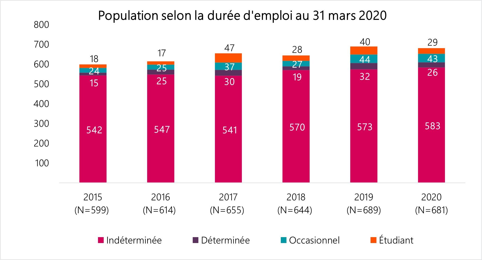 - Seules les nominations d'une durée déterminée et les nominations pour une période indéterminée sont incluses (les mutations, les nominations d’employés occasionnels et les nominations intérimaires sont exclues).