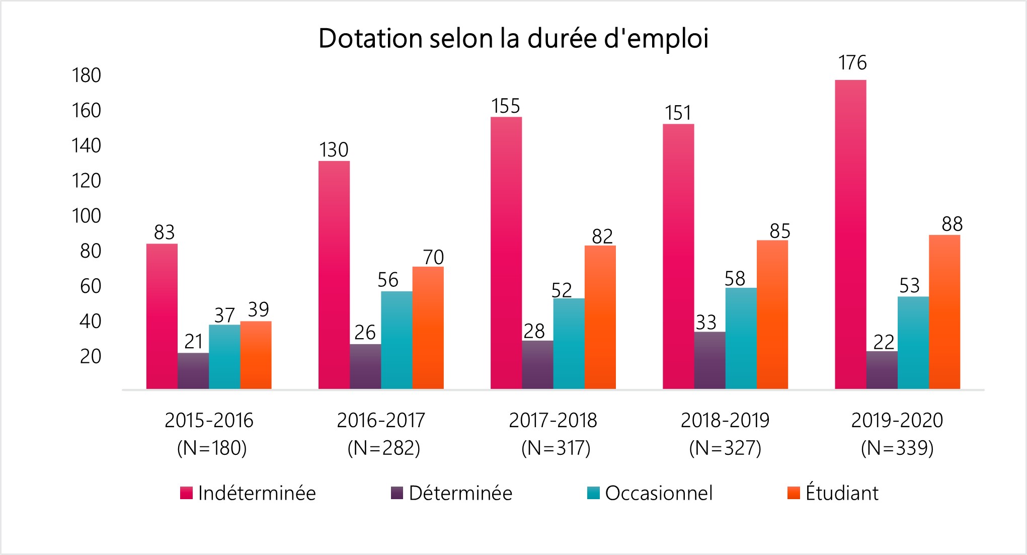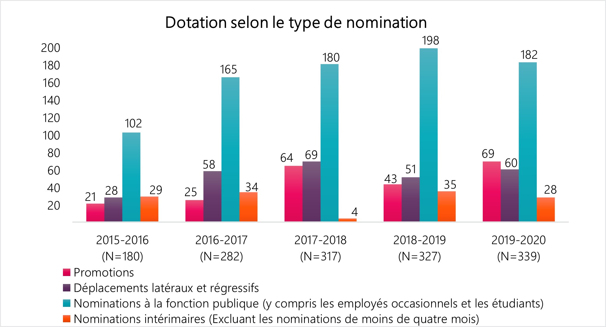 - 182 nominations à la fonction publique (incluant les emplois occasionnels et les étudiants);