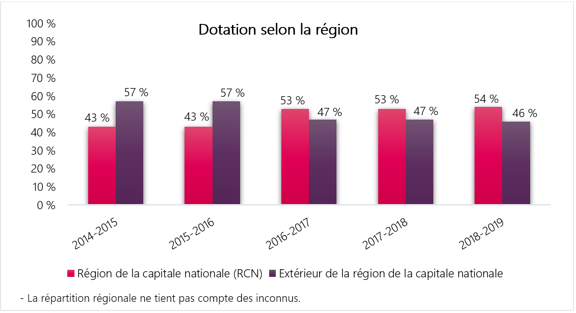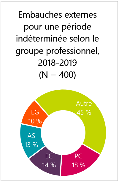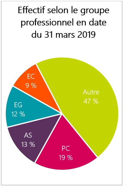 - Ces données ne correspondent pas nécessairement aux donnés sur les ressources humaines de chaque organisation en raison des différences de méthodologie et des périodes visées par l’analyse.