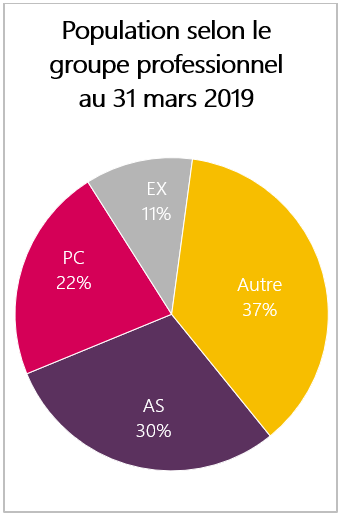 - Ces données ne correspondent pas nécessairement aux donnés sur les ressources humaines de chaque organisation en raison des différences de méthodologie et des périodes visées par l’analyse