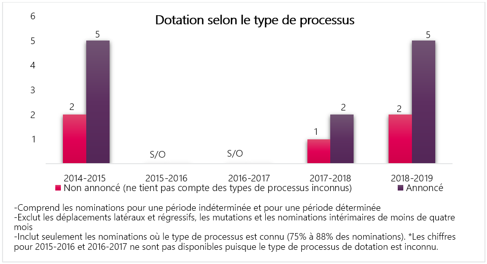 - Seules les nominations à des postes de durée déterminée et les nominations à des postes pour une période indéterminée sont incluses (les mutations, les nominations occasionnelles et les nominations intérimaires sont exclues)