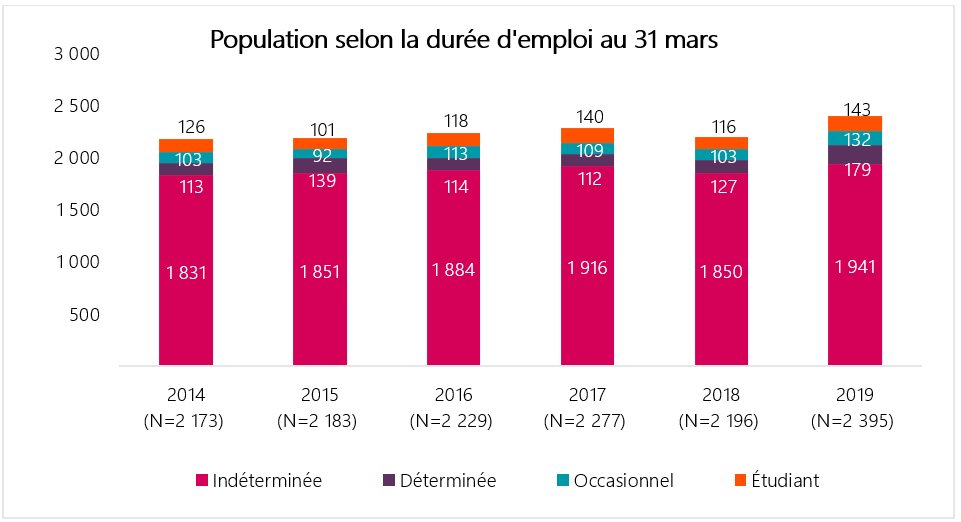 - 253 employés occasionnels;