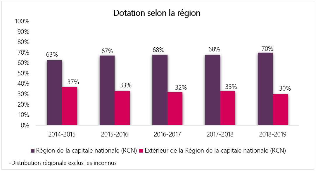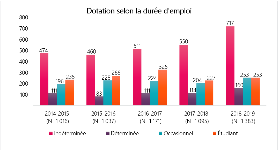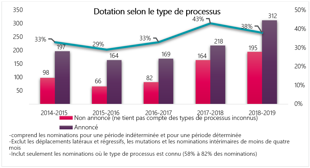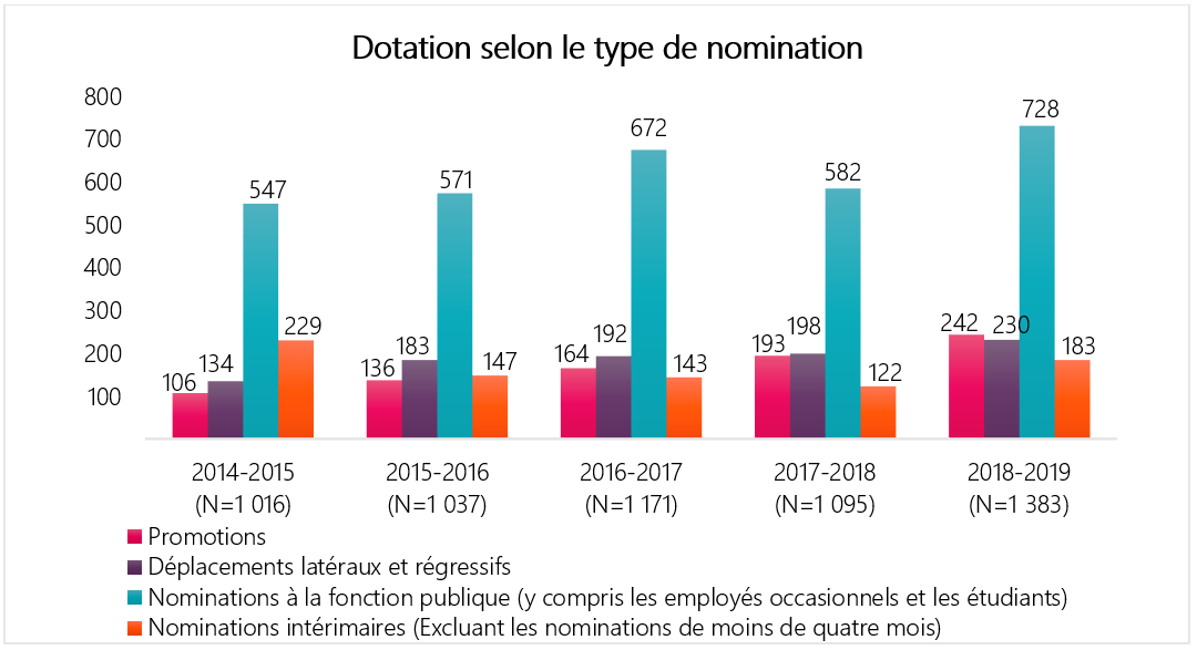 En 2018-2019, l’ASPC a réalisé 1 383 mesures de dotation (excluant les nominations pour une durée de moins de quatre mois) :