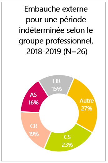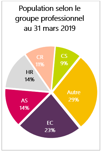 - Ces données ne correspondent pas nécessairement aux donnés sur les ressources humaines de chaque organisation en raison des différences de méthodologie et des périodes visées par l’analyse.
