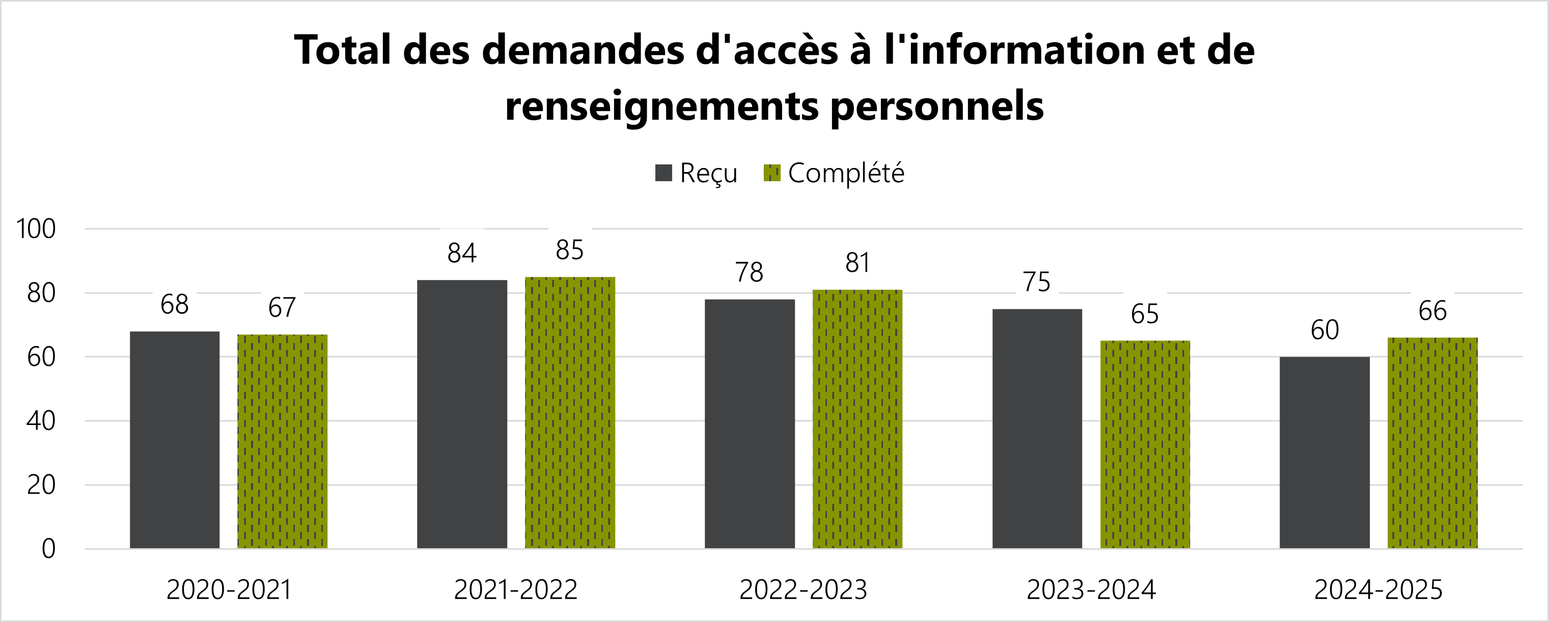 Total des demandes d’accès à l’information et de renseignements personnels – Version texte