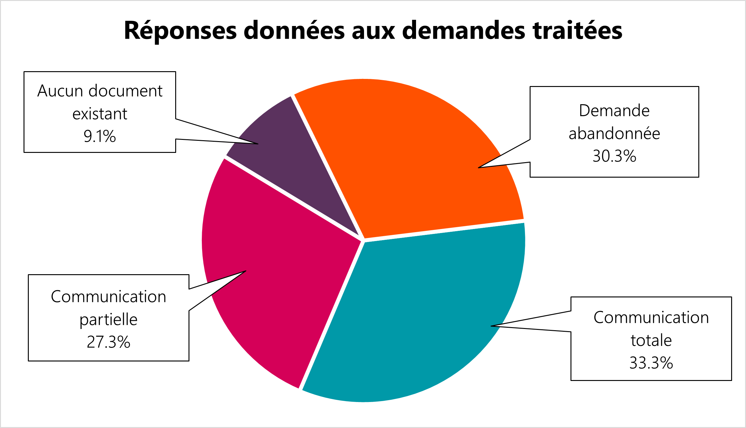 Sur les 33 demandes fermées durant la période du présent rapport :