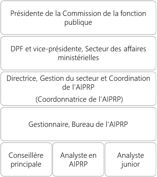Hébergé dans le Bureau de la dirigeante principale des finances et vice-présidente du Secteur des affaires ministérielles, dans la région de la capitale nationale, le Bureau de l’AIPRP appuie la directrice de la Gestion du secteur et de la Coordination de l’AIPRP (la directrice) dans l’application des dispositions de la Loi et des politiques connexes du Secrétariat du Conseil du Trésor (SCT) au nom de la CFP.