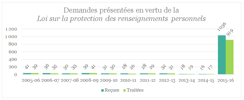 Loi sur la protection des renseignements personnels — Rapport annuel — 1er avril 2015 au 31 mars 2016